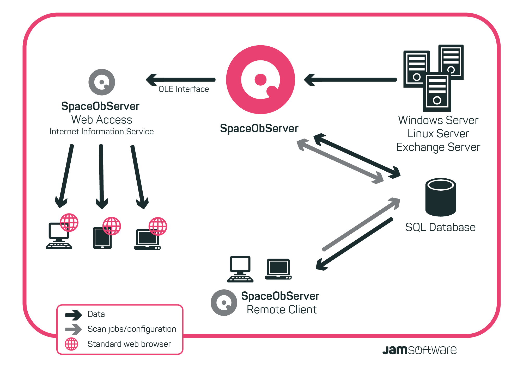 The “SpaceObServer Client Access” is typically installed on end use PC’s (e.g. the administrator’s PC) and connects to the database you stored the scan information in.